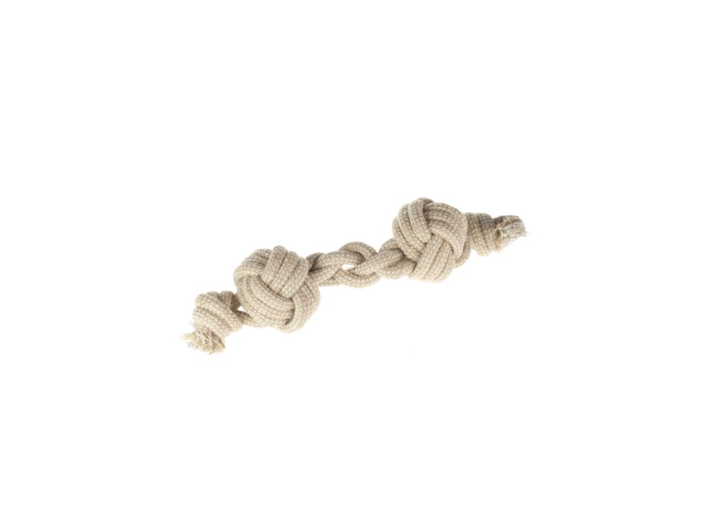 Hračka ve tvaru činky z jutovo-bavlněného lana určená pro psy. Hodí se zejména pro přetahování a aport.