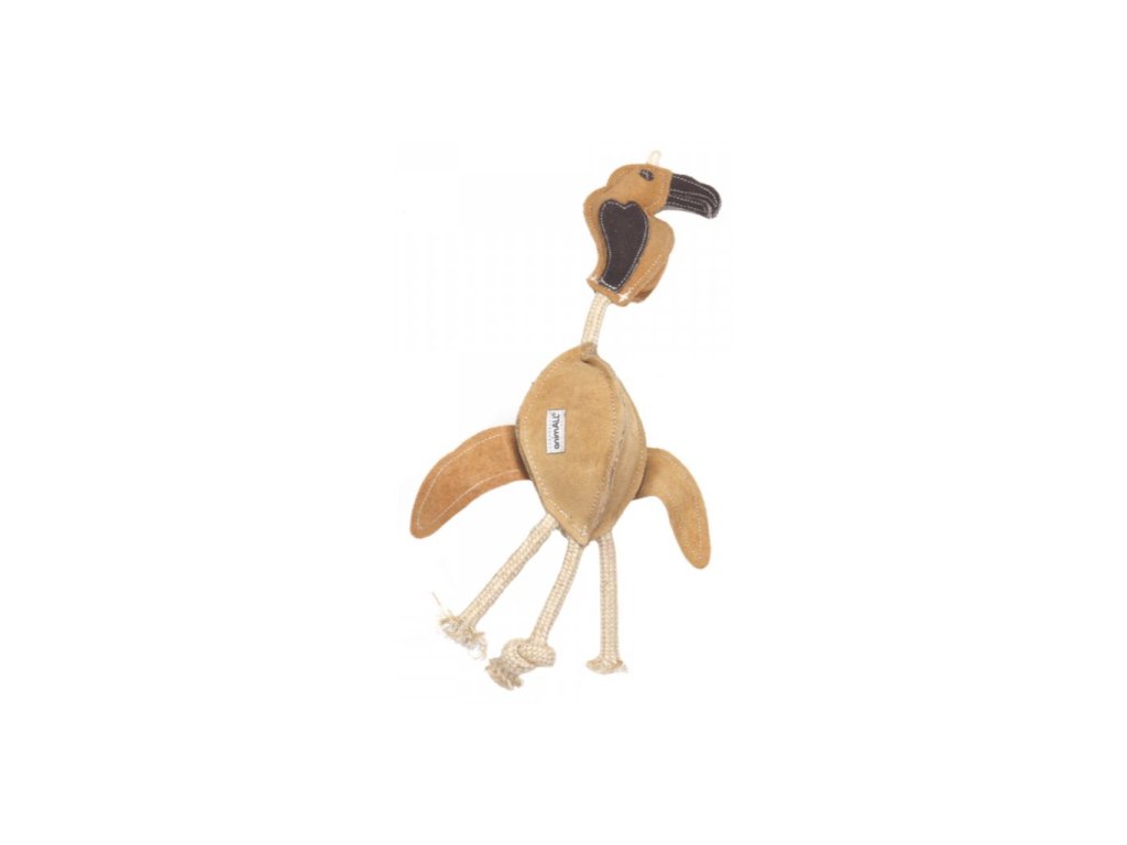 AnimALL hračka z kombinace přírodní kůže, vlněné plsti, juty a jutovo-bavlněného lana určená pro psy. Výplň hračky tvoří kokosové vlákno.