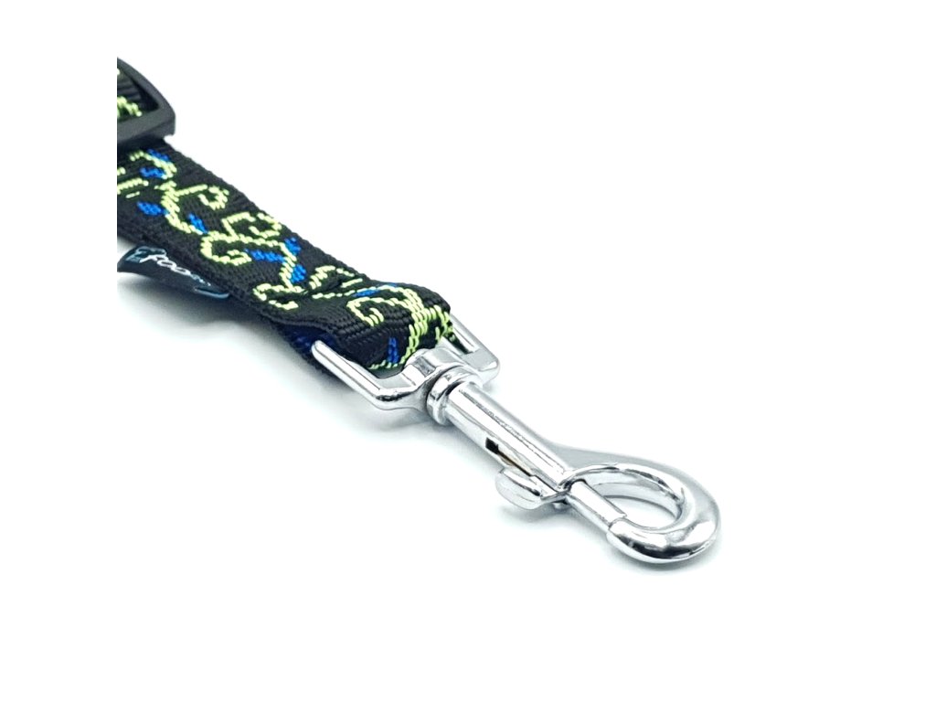 Šířka popruhu je 2,5cm a délka nastavitelná od 50cm do 75cm. Karabina, autospona i šířka popruhu je vhodná pro střední a velká plemena. Bezpečnostní autopás pro psa je opatřen kvalitní kovovou průvlečnou sponou pro bezpečnější nastavení délky. Kvalitní popruh české výroby v černé barvě se vzorem.
