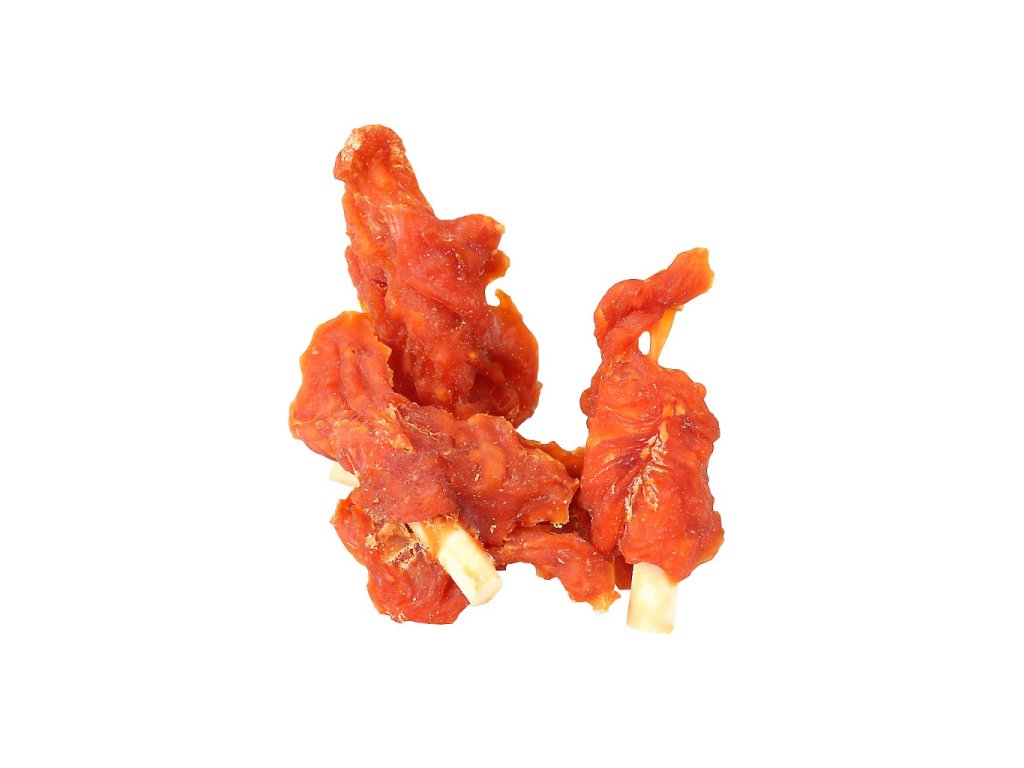 Šťavnatá lízátka z kuřecího masa protknutá křupavou kalciovou tyčinkou, podporující čištění zubů, kdy kousání a žvýkání posiluje žvýkací svalstvo, dásně a zuby.