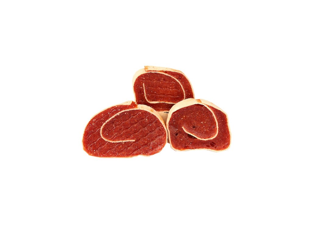 Šťavnaté kousky sušeného kuřecího a rybího masa formovaná do měkkých roládek pro podporu imunity a lesklé srsti. Vynikající doplnění a oživení Vašeho společného tréninku.