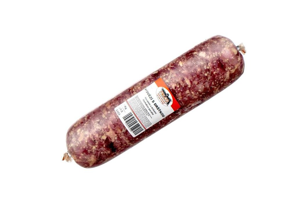 Mletá směs z 50% drštěk a hovězích drobů. Vše obsažené v 1kg balení. Salám je balen ve varném střevě, které lze vařit i s obalem.
