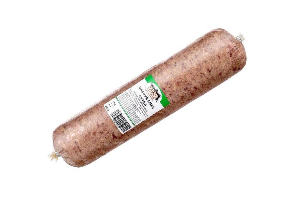 Mletá směs z kuřecího, vepřového a hovězího masa. Vše obsažené v 1kg balení. Salám je balen ve varném střevě, které lze vařit i s obalem.