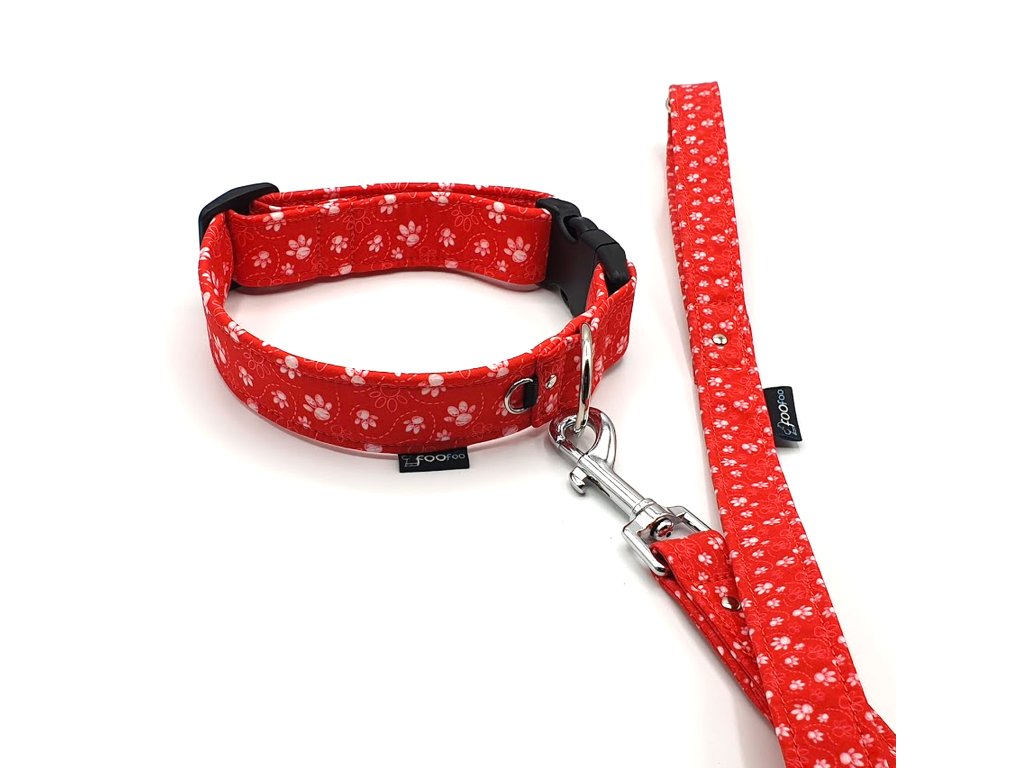 Vodítko Foofoo Design Paw Red ploché
