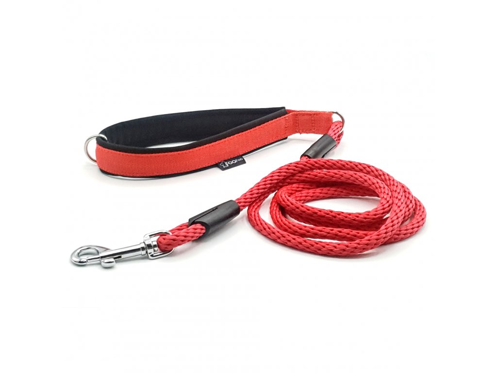 Kulaté vodítko FooFoo z pevného a na dotek jemného lana s měkkou softshellovou polstrovanou rukojetí.